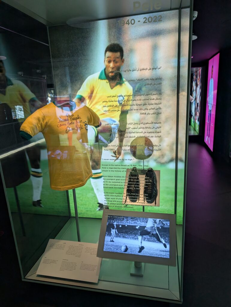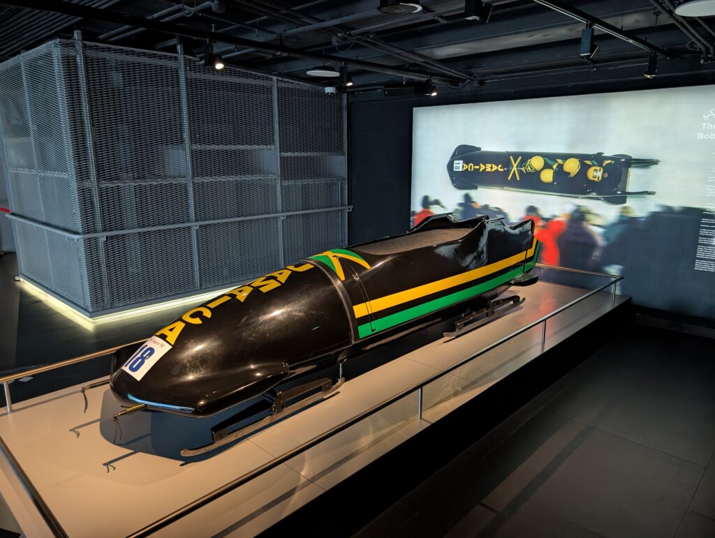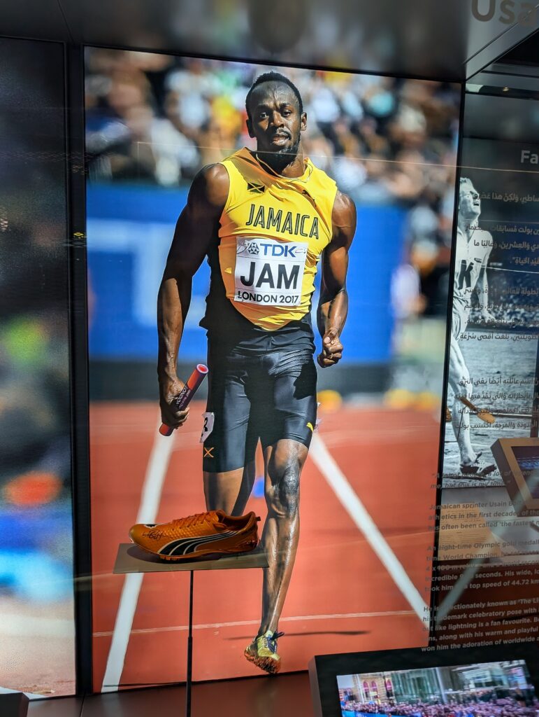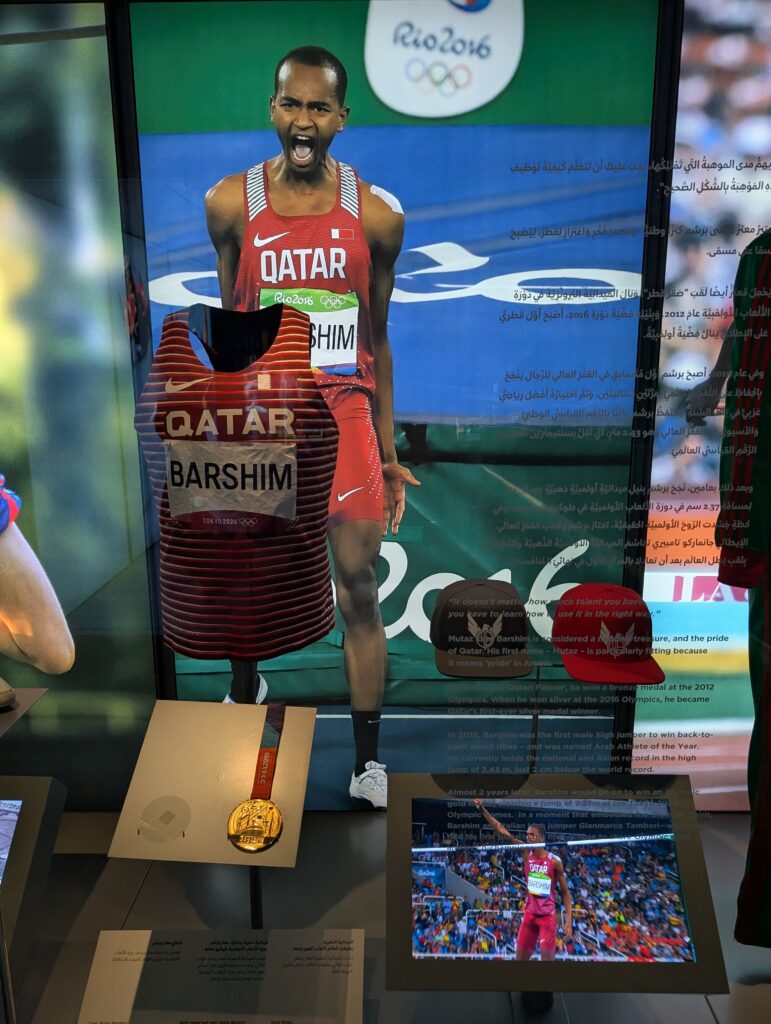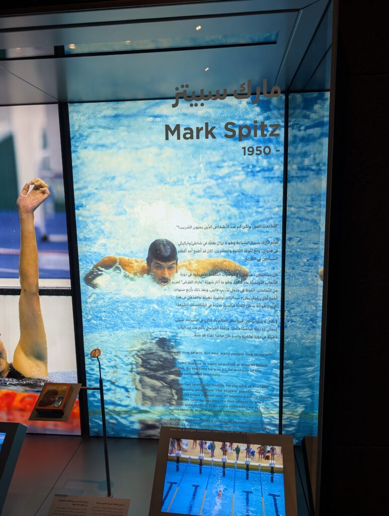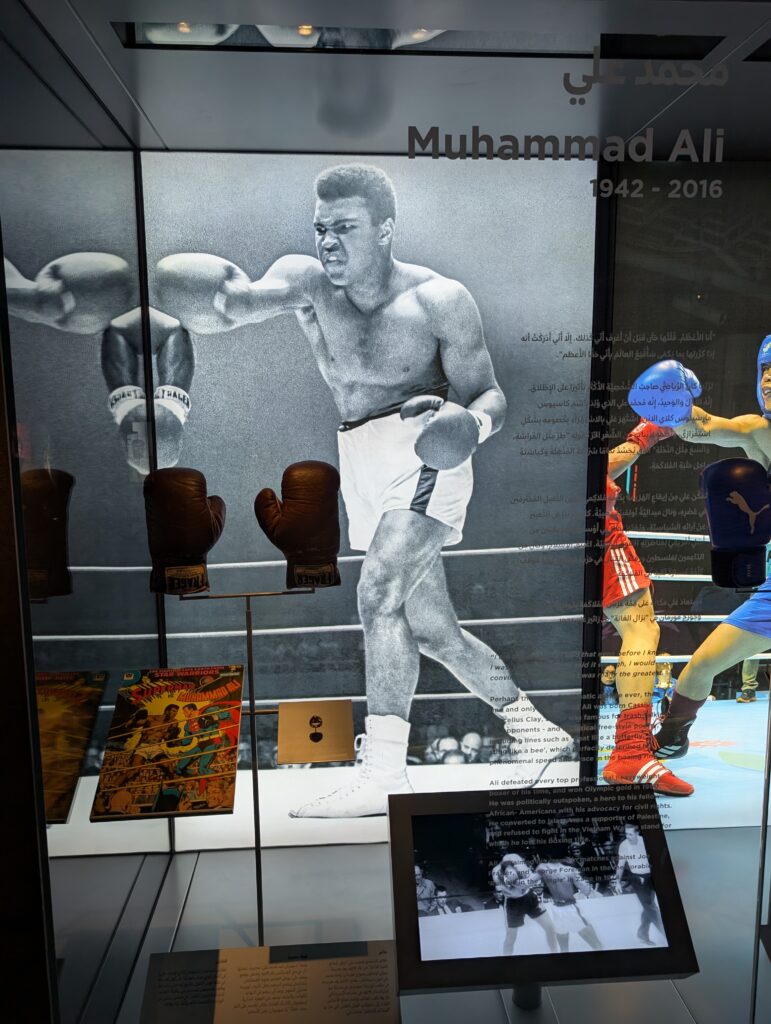 The museum houses a remarkable collection of memorabilia tied to individual athletes, along with a brief biography of the athlete and summary of the significance of his or her accomplishments. The collection is not all-inclusive, and seems to be skewed in two main directions. First, there is understandably a disproportional number of display items from athletes from the Middle East. Many relatively obscure, only moderately successful athletes are recognized, often because they were the first or the best Arabic or Muslim participant in a given sport or event. Second, many of the highlighted athletes seemed to be drawn from either personal interest of the original collector or based on what artifacts could be acquired for display. So, while the collection is by no means complete, or balanced, it is still very impressive, containing items from Mark Spitz, Muhammad Ali, Joe Montana, and even a replica of the Jamaican Bobsled.