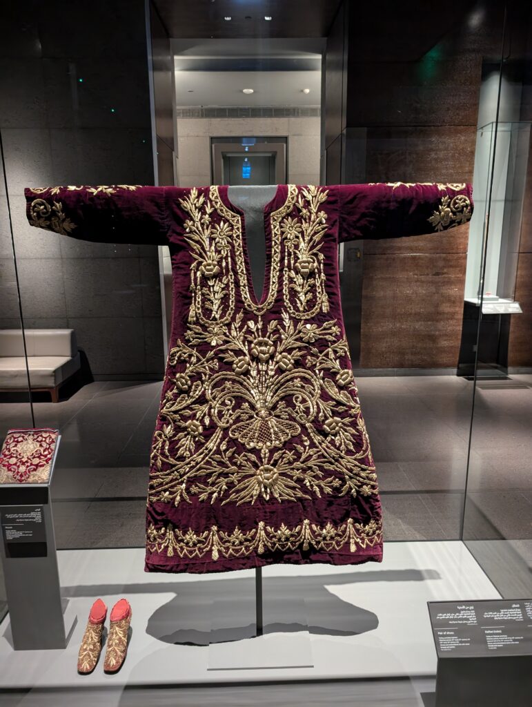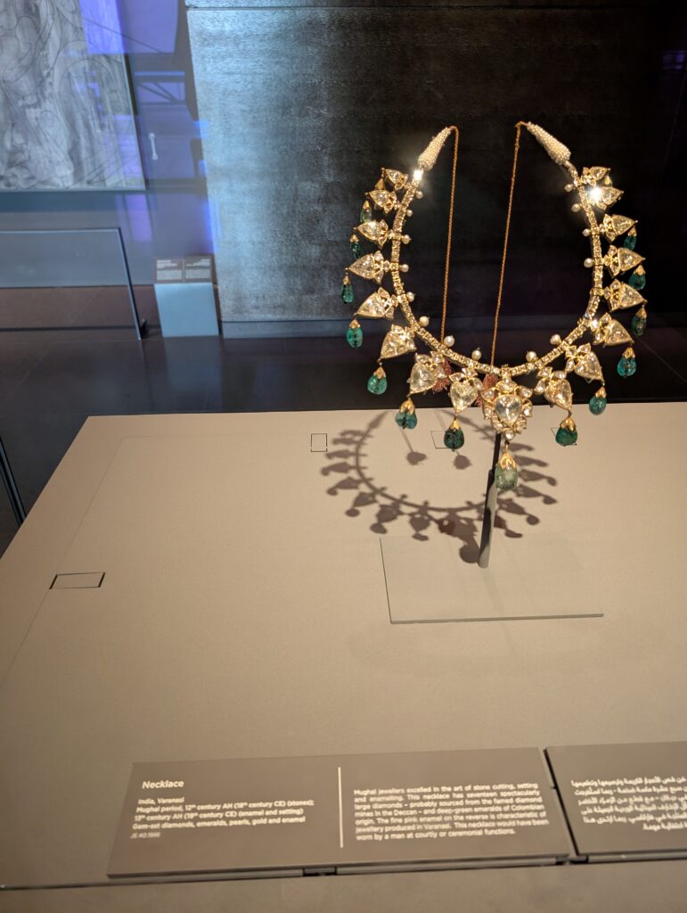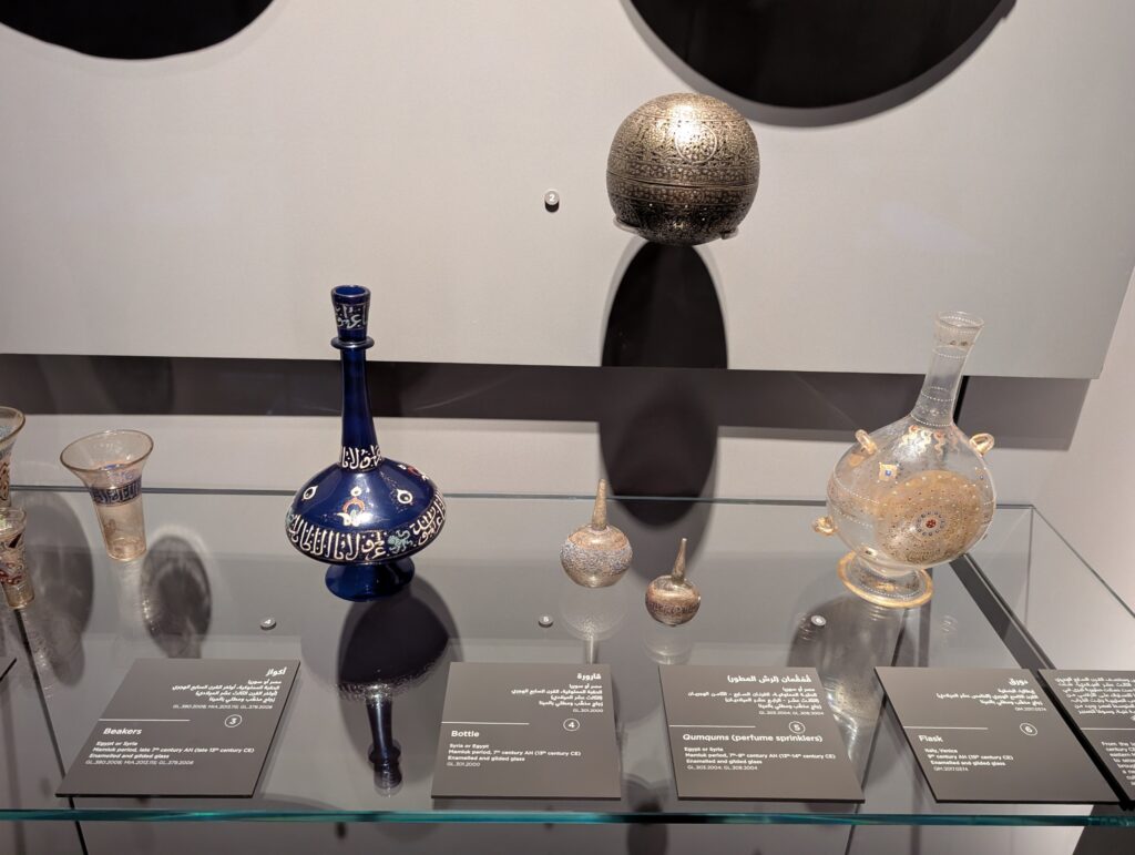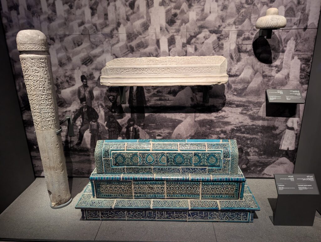 I was not sure how much time I would spend in an Islamic art museum. I assumed a more narrow view of art than what is actually depicted. The Prado and the Louvre display some sculptures and a lot of paintings. The Museum of Islamic Art contains all sorts of different objects that could be defined as art in a broader sense. They have pottery, clothing, utilitarian items like armor and pieces of palanquins, rugs and carpets, headstones, markers, and even pieces of architecture, not to mention jewelry, ornamentation, and examples of calligraphy. It made for an interesting museum, one that occupied the remainder of my afternoon.