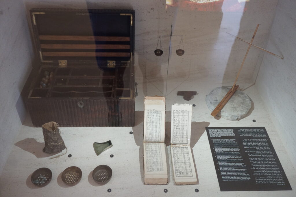My next stop was the Pearling Path. Bahrain has worked with UNESCO to have a string of buildings in the Muharraq neighborhood preserved as testimony to their status as a world leader in the extraction and export of pearls in the centuries leading up to the 20th. The buildings are not on contiguous property, but are tied together by a walking path lighted by fixtures designed to look like pearls. There are homes and mosques built and dedicated by the pearling magnates of this bygone era. Many of the residential buildings have a majlis, or sitting room, designed to host guests and negotiate deals. Some buildings have been partially converted into small museum exhibits containing pearling industry artifacts.