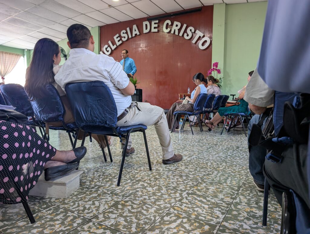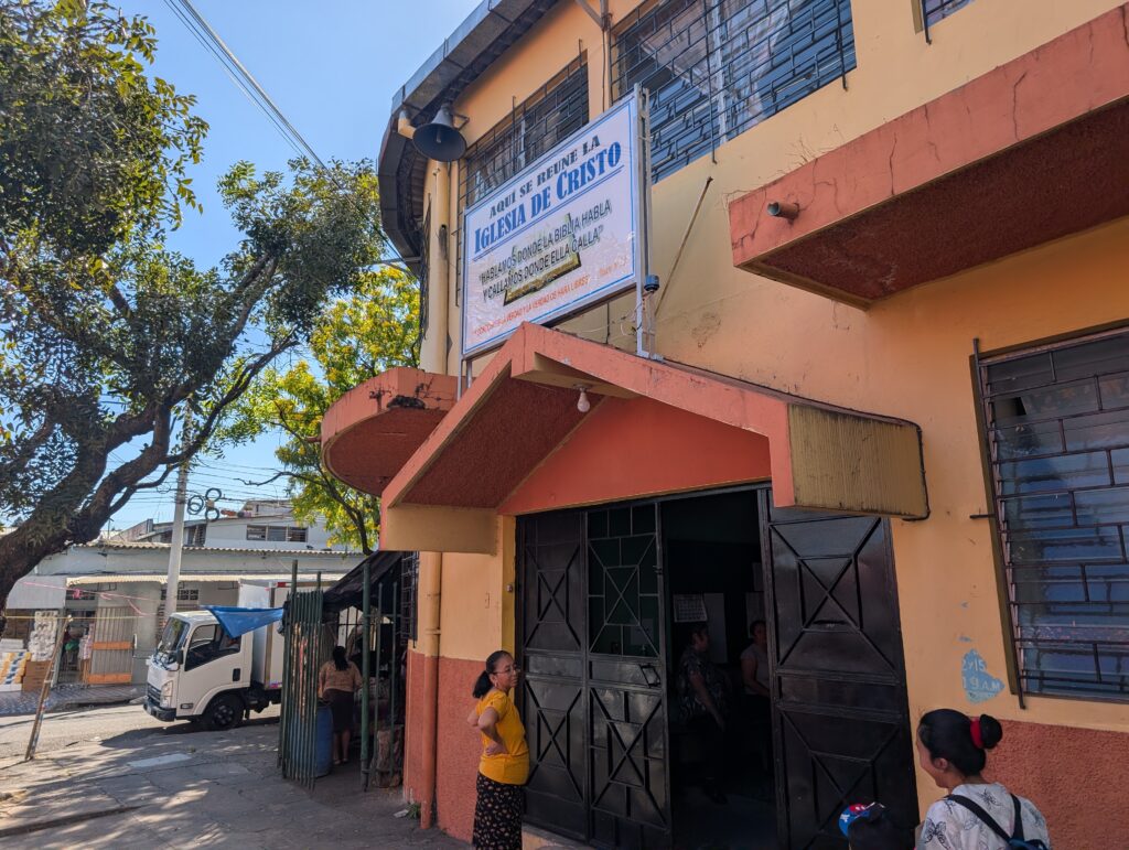 When I passed the Iglesia de Cristo San Salvador Central on Saturday afternoon, there were vendors on the front edge of their space who I assumed to be members operating. The church was also open, as apparently they have men’s and women’s Bible studies on Saturday afternoon. A lady near the door confirmed for me that worship started at 8:30 Sunday morning. In most Latin American countries, things tend not to start on time and take quite a bit longer than one might expect. The service did go pretty long, but they were more than punctual starting. I arrived at about 8:20 so I would have time to visit. Not only had the service already begun, I could barely find a seat in the large building. The place was packed with at least 200 people.