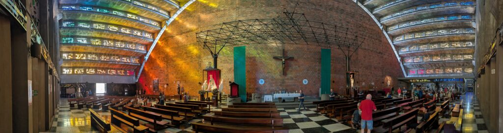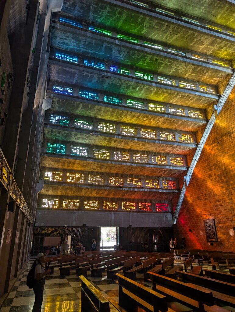 From the Municipal Cathedral, I walked to the Iglesia del Rosario, another not-that-old Catholic church. It was built during the sixties, and has a spectacular array of stained glass built into the curved ceiling and walls. The secondary light effects were just spectacular. I don’t think I can do anything more to explain the effects of the stained glass other than to just let you, the reader, gaze at the photos. The Iglesia del Rosario also has some interesting and unique sculptures depicting the stations of the cross, with two dimensional images that have hands or limbs sticking out, making them partially three dimensional. Although I found these interesting, they certainly were not as aesthetically pleasing as the effects of the glass. The Resurrected Jesus sculpture, though was intriguing in the way it depicted an abstract idea of what a resurrected body would like like.
