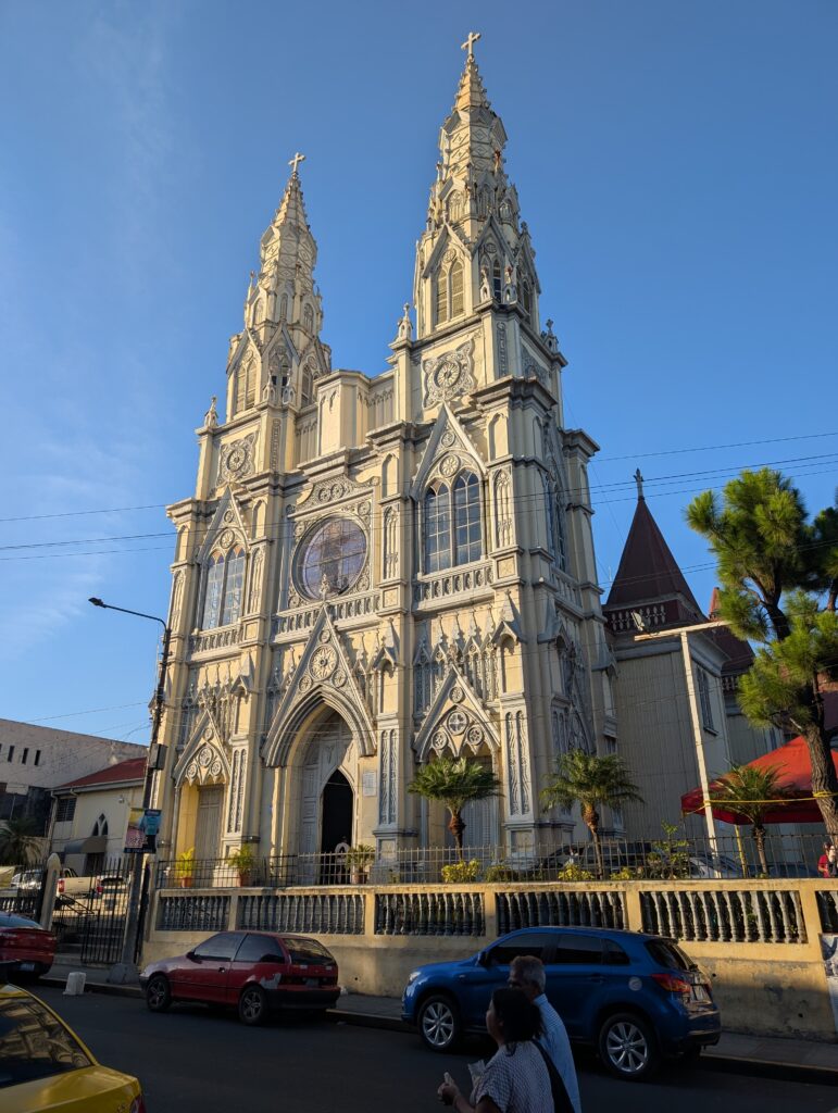 On the way home, I found another interesting church, this one a century old. The Basilica of the Sacred Heart of Jesus has a striking exterior, and stately appearance. I just looked at the outside, before heading in to a local eatery to grab a $4 mega-torta. I believe they were holding a mass that Saturday evening. It would have been rude to enter as a tourist. I spent the rest of the evening heading to a grocery store and visiting with a Chinese tourist about my age who needed some advice on love and marriage, of all things. I did the best I could as we walked to the grocery store, KFC, and the circuit at Cuscatlan Park.