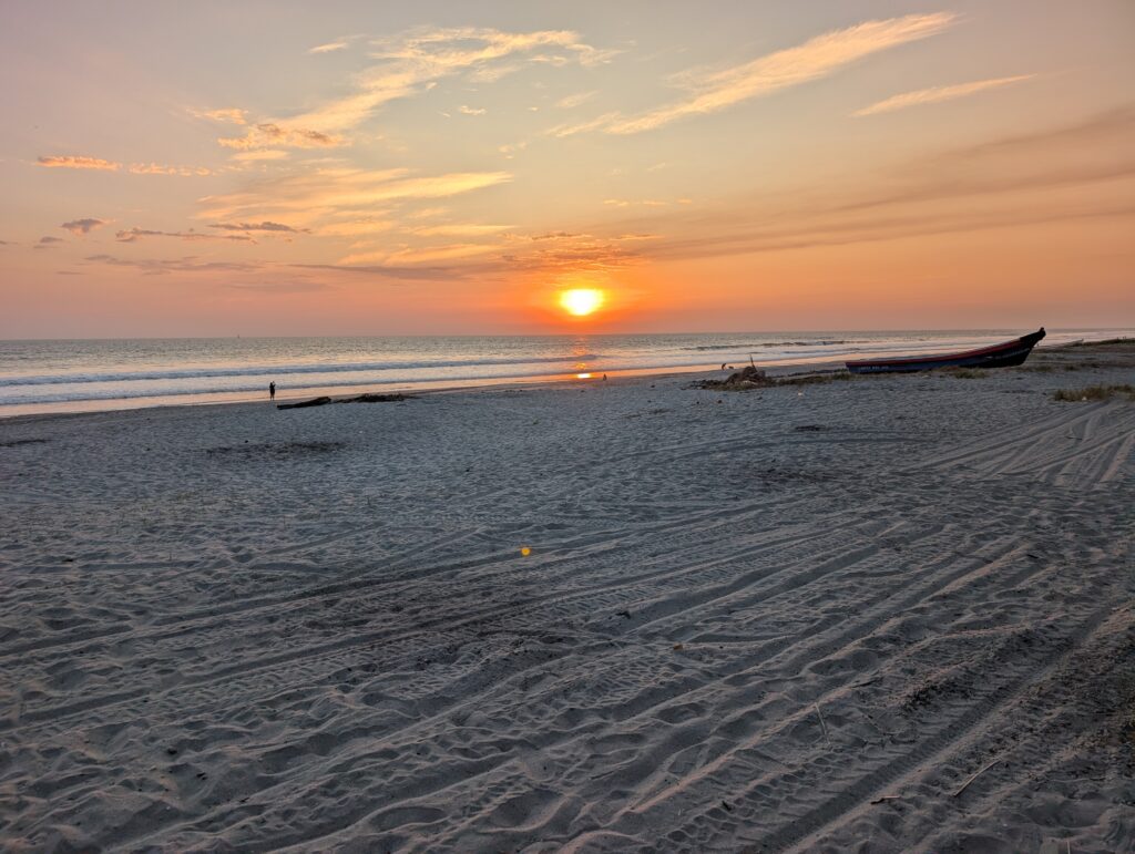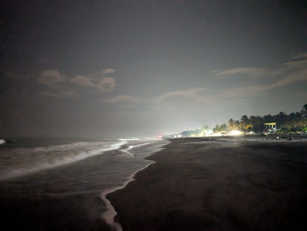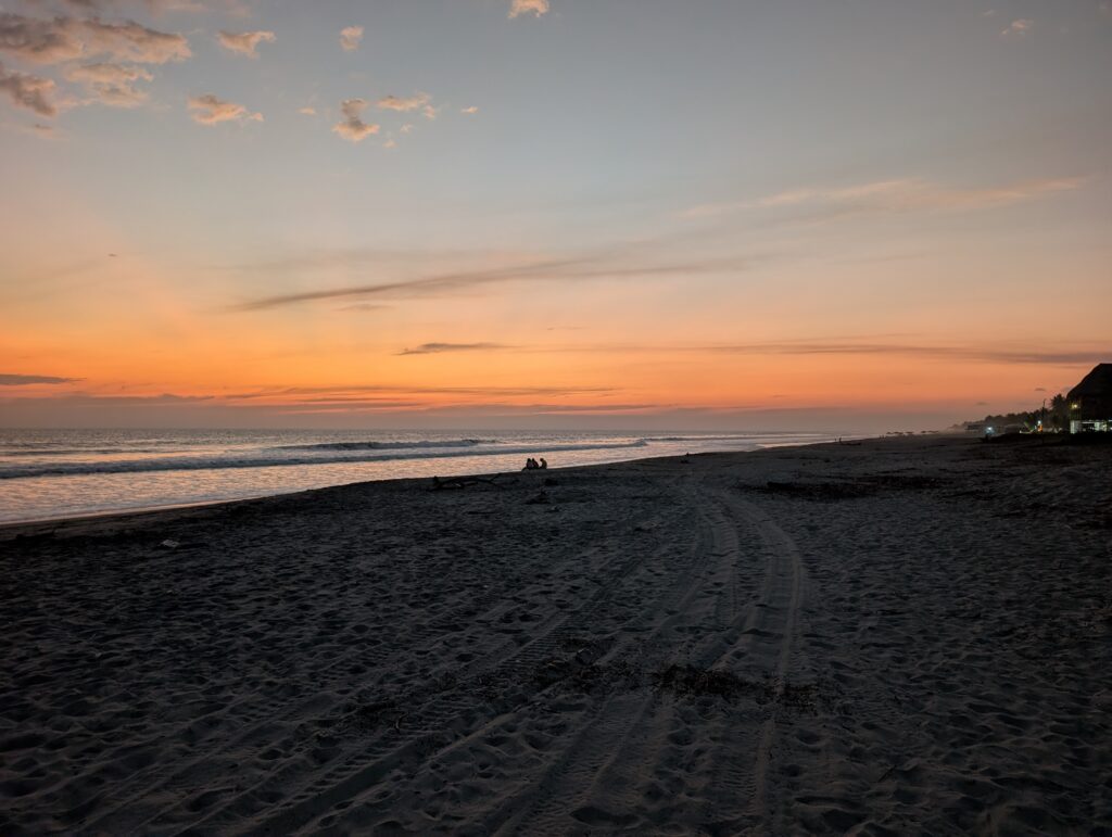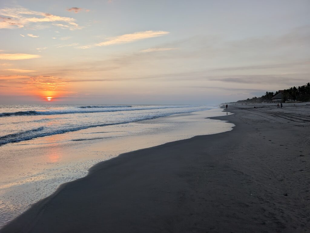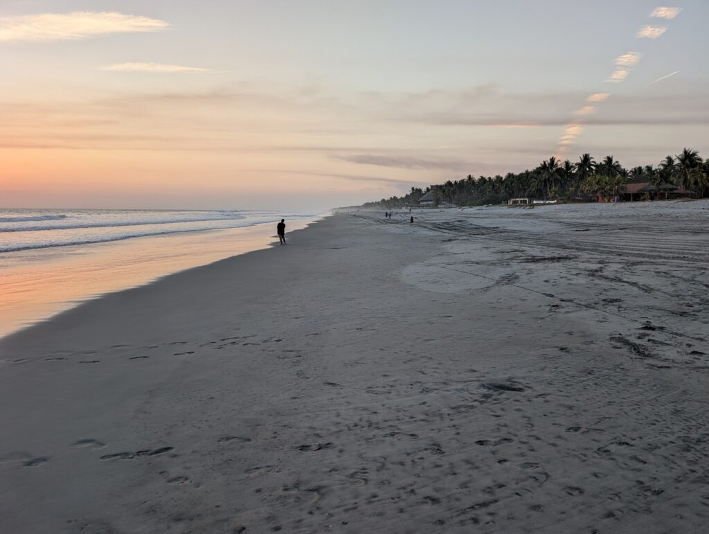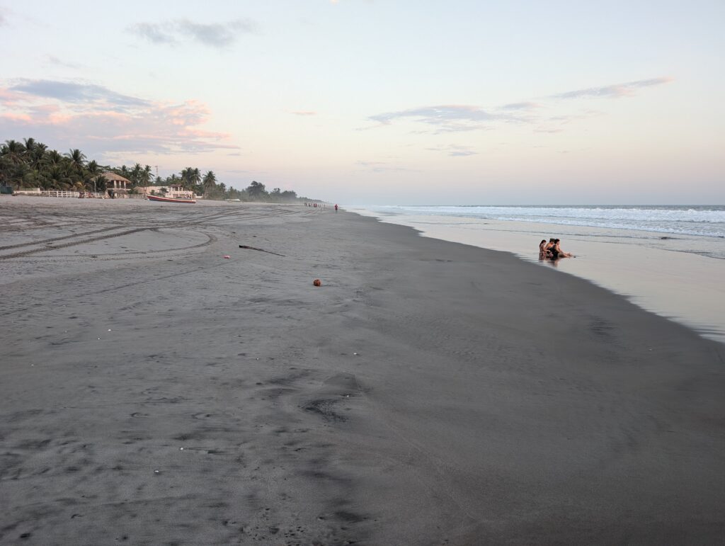 The trip was a bit frustrating on the whole, but a kind of funny part of traveling the way I do. I didn’t get angry, though sometimes things like this can wear on my patience. I just rolled with it, looked out the windows, and visited with people at stops. By about five or six in the afternoon, I reached my hostel. It was nice, and the hosts were friendly. The room was cool and clean. I walked the beach as the sun set. I ate a meal on a plastic chair under a tarp overlooking the sea. I walked a long way. The beach seemed almost endless. There were very few tourists. Visiting the beach in El Salvador is not an extremely popular tourist venture, but I would recommend it. It was pleasant, friendly, and cheap. El Salvador has certainly benefited from the Bukele clean-up.