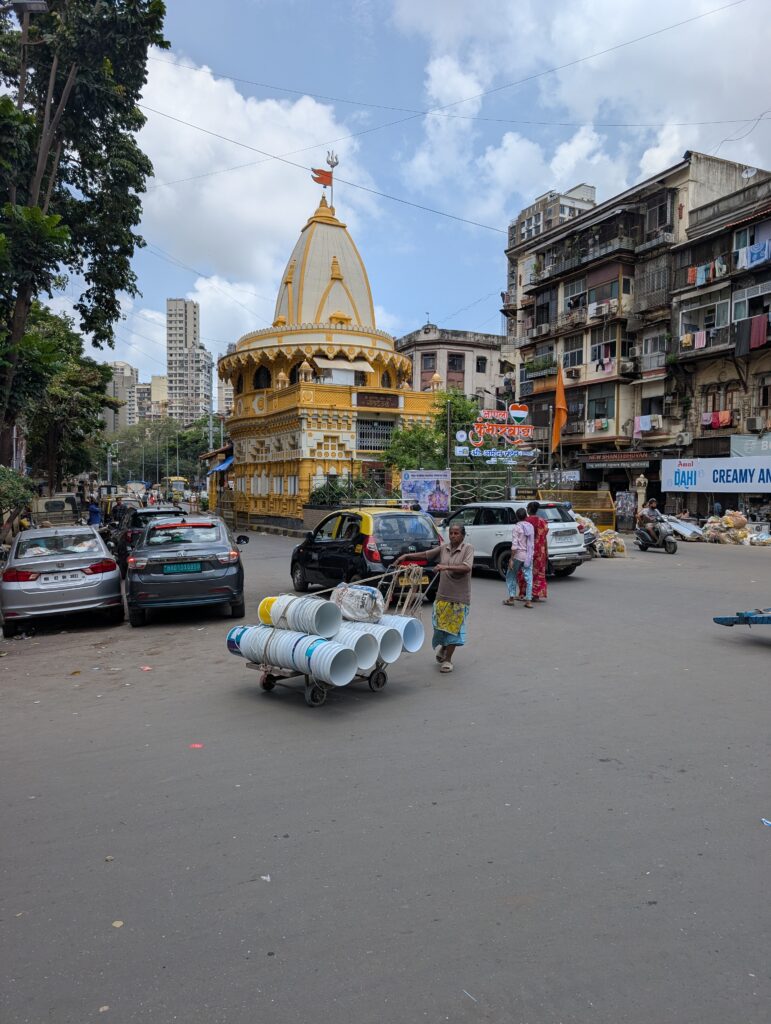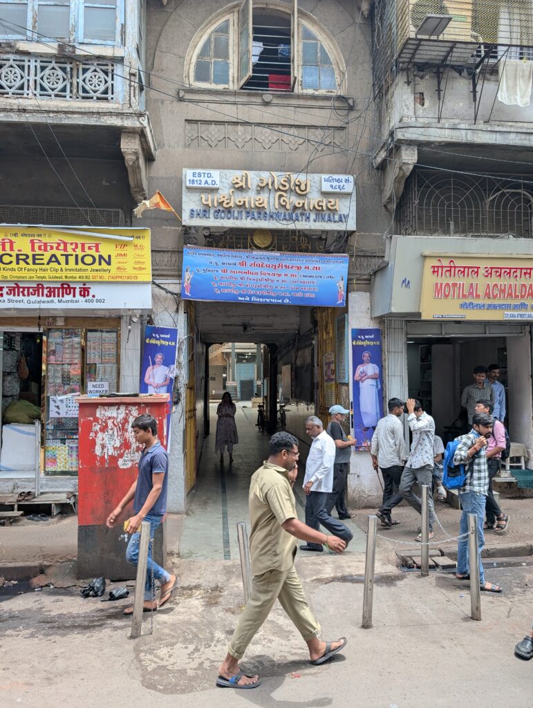 As Tuesday was my last full day in Mumbai, I set out to clean up any other tourist sites I may have missed on Saturday. After my usual delayed start for the delicious hot breakfast, I hiked down to the bus stop to catch number 51 down to the South end of Mumbai. I did not go to the extreme end down by Colaba, but just far enough to walk to the oldest Jain temple in Mumbai.