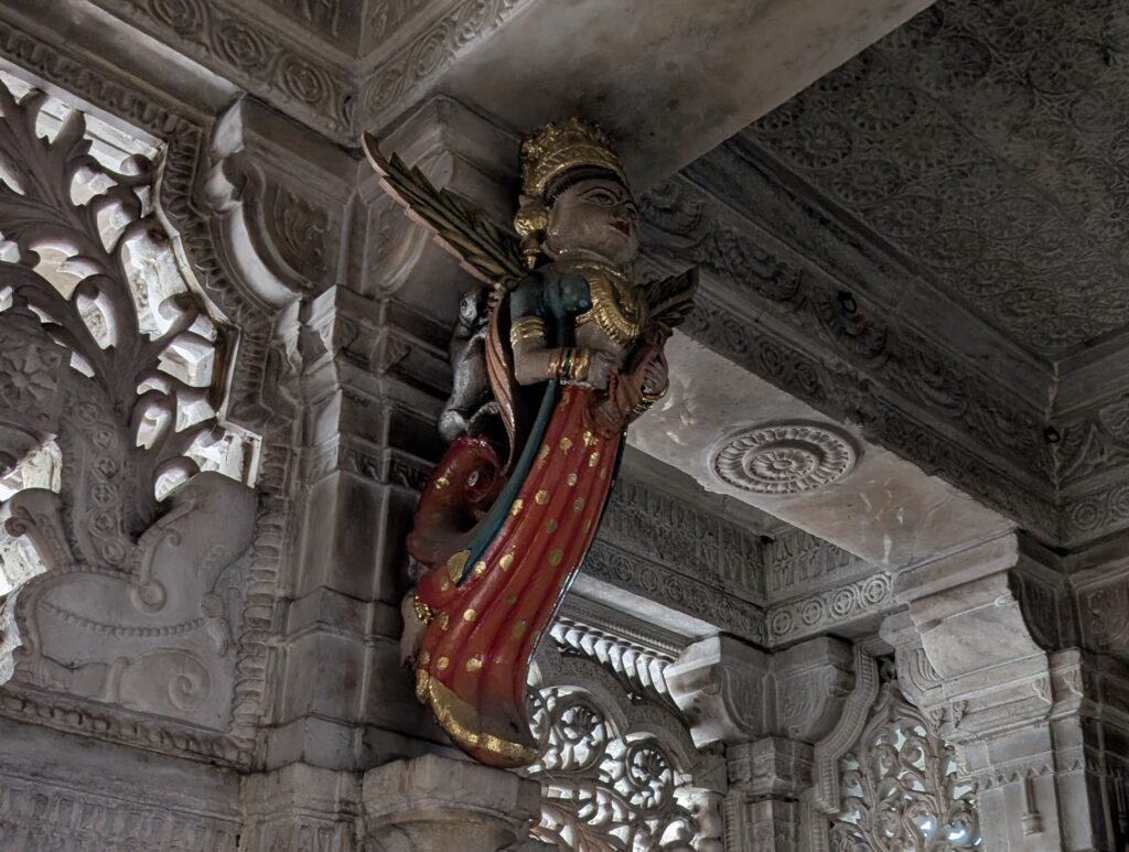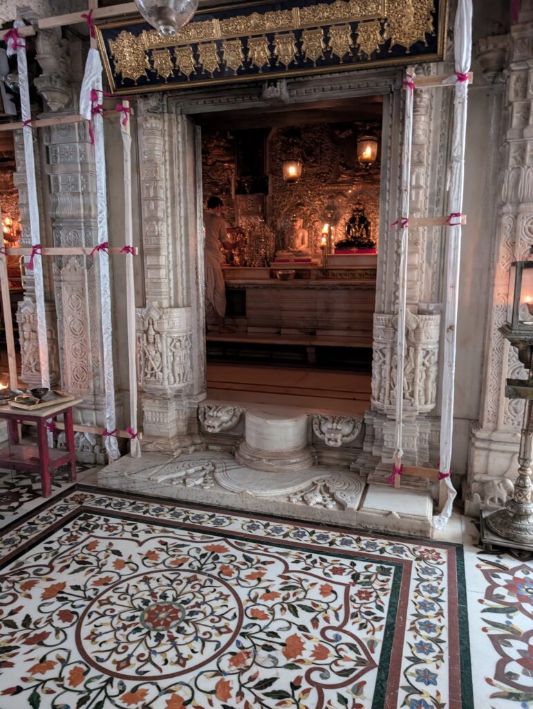 Jains do not believe the universe was created, nor has a judge or overarching ruling being. To them, the world and everything in it is eternal. They believe in demonic beings and super-mortal beings. Since Jains believe in reincarnation, these beings live and die, but are not destroyed. I am not certain how all of the small shrines in the temple I visited play into all of this. In Buddhist temples, there is always a Buddha statue. Some people meditate before the Buddha image or others in the temple. Others pray and make offerings, asking for something that seems a little less deep than peace, truth, and non-possessiveness. I assume this is just a difference in the spiritual maturity level of Buddhist practitioners. I do not have enough knowledge of Jainism to understand if their temples operate similarly.