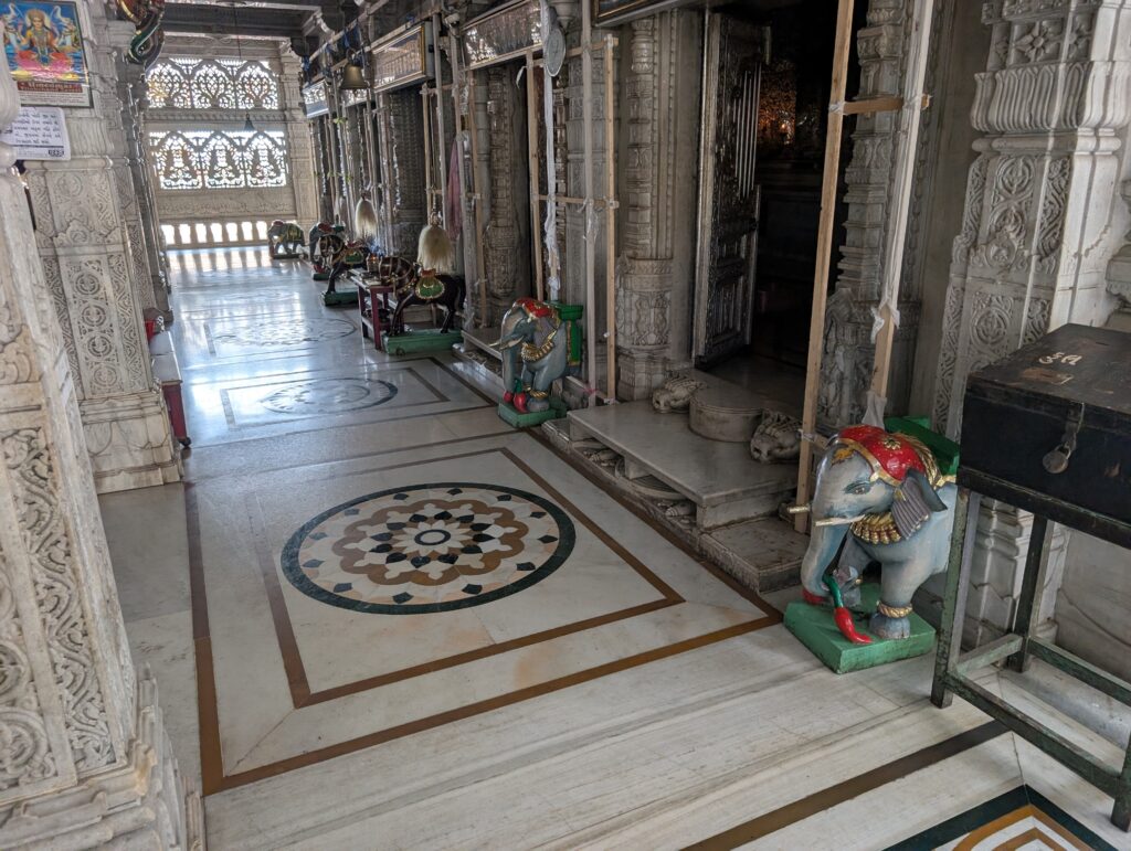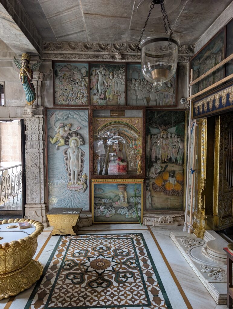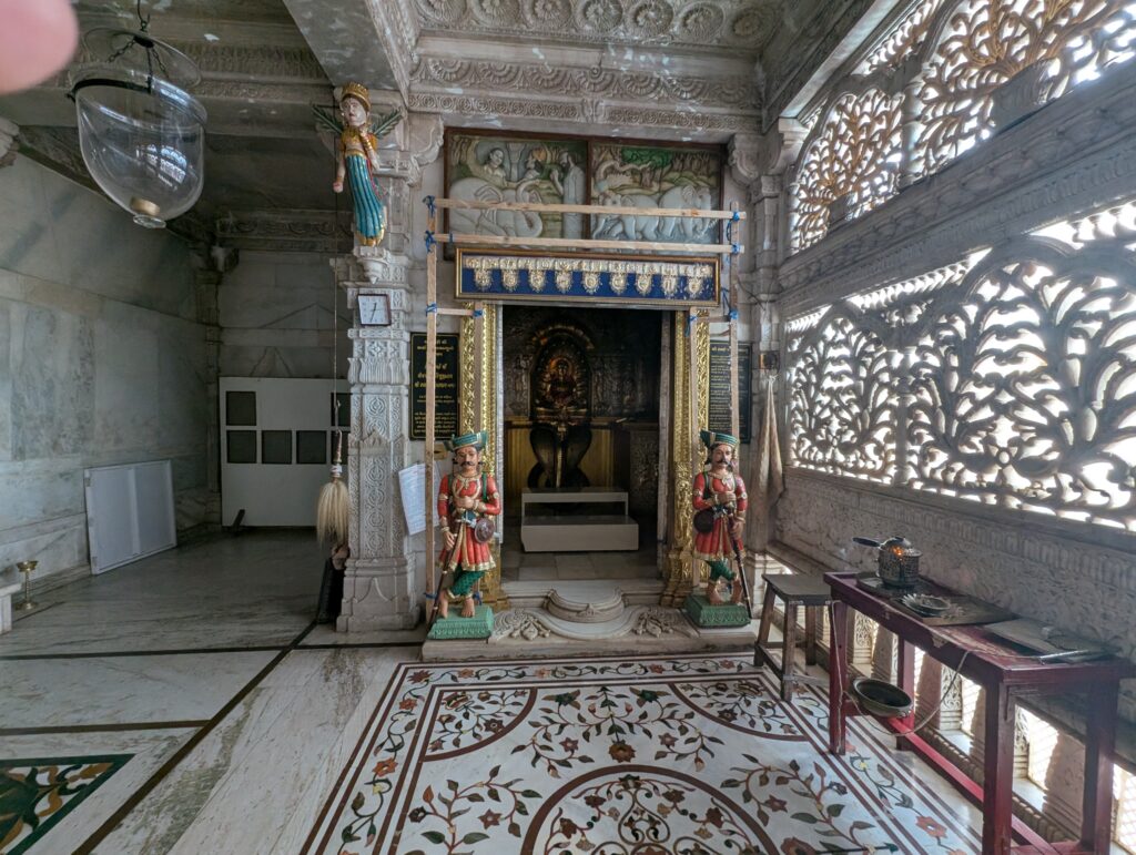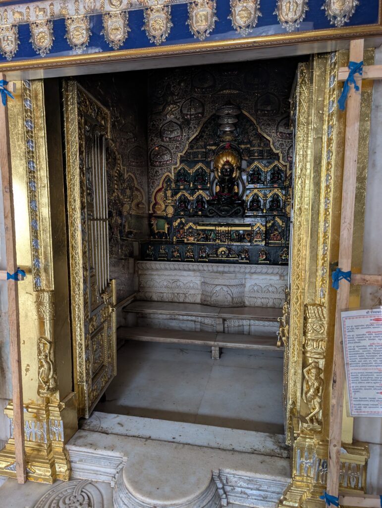 There are about four to five million Jains around the world. Most are in India, but there are sizeable groups in the U.S., Canada, and Japan. I had never seen a Jain facility, and was interested in what their facility might look like. The temple I visited had several floors, the upper two being the primary worship locations. There were recessed areas in the inner temple with god statues in them. The statues did not look all that dissimilar to Buddhist images. In fact, I would say most of the statues in the Jain temple looked more like darker Buddhas with glowing, robotic eyes. They looked like Buddhas with C3PO eyes. I took my time walking and snapping photos. I tried to do so without disturbing any adherents. There were a few people inside meditating or praying, visiting the gods.