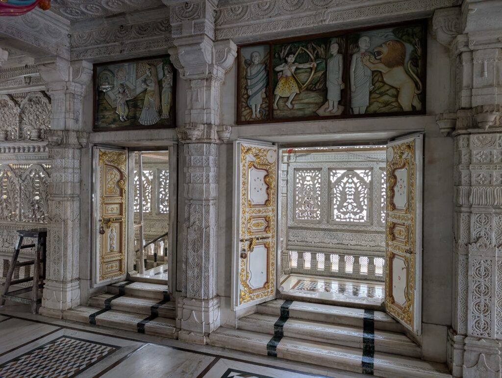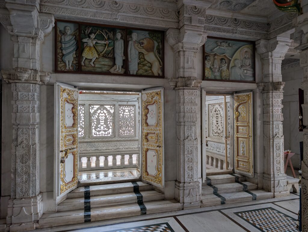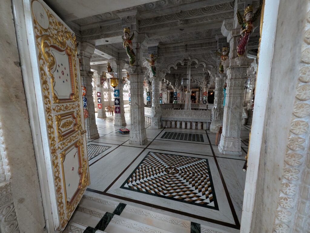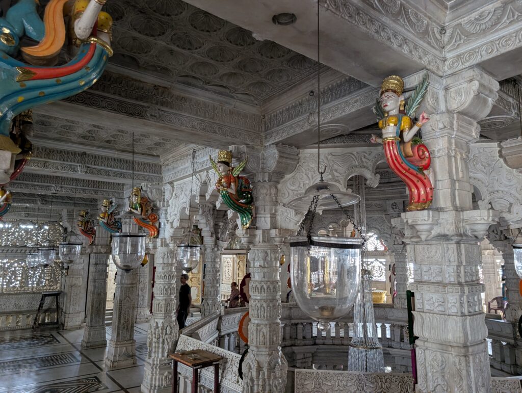 There are about four to five million Jains around the world. Most are in India, but there are sizeable groups in the U.S., Canada, and Japan. I had never seen a Jain facility, and was interested in what their facility might look like. The temple I visited had several floors, the upper two being the primary worship locations. There were recessed areas in the inner temple with god statues in them. The statues did not look all that dissimilar to Buddhist images. In fact, I would say most of the statues in the Jain temple looked more like darker Buddhas with glowing, robotic eyes. They looked like Buddhas with C3PO eyes. I took my time walking and snapping photos. I tried to do so without disturbing any adherents. There were a few people inside meditating or praying, visiting the gods.