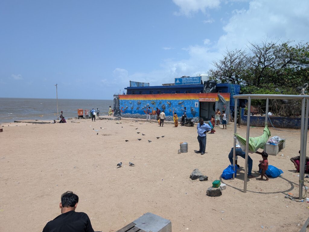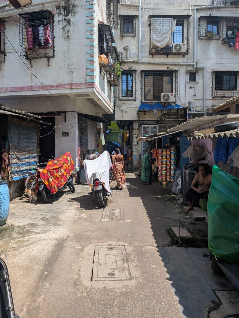 I learned more from the entire day in context than I did from Juhu itself. My walk that day reinforced my general impression of India, as I expressed it in my 2024 article (link). India has an overwhelming amount of everything – culture and crud; beauty and filth; spectacular cities and slums; friendly people and con artists. Virtually all of this was on display as I walked to Juhu Monday morning. As you head north from the hostel, the first thing you walk through is a slum of winding alleys, stray animals, balls of loose electrical wires and who knows what all else. The path I walked led to a narrow footbridge over the river you have to cross to leave Bandra going north. The river is black and has a distinct odor. Where you can see anything down into it, what you see is floating pieces of trash. Never have I put more hope and faith into a bridge!