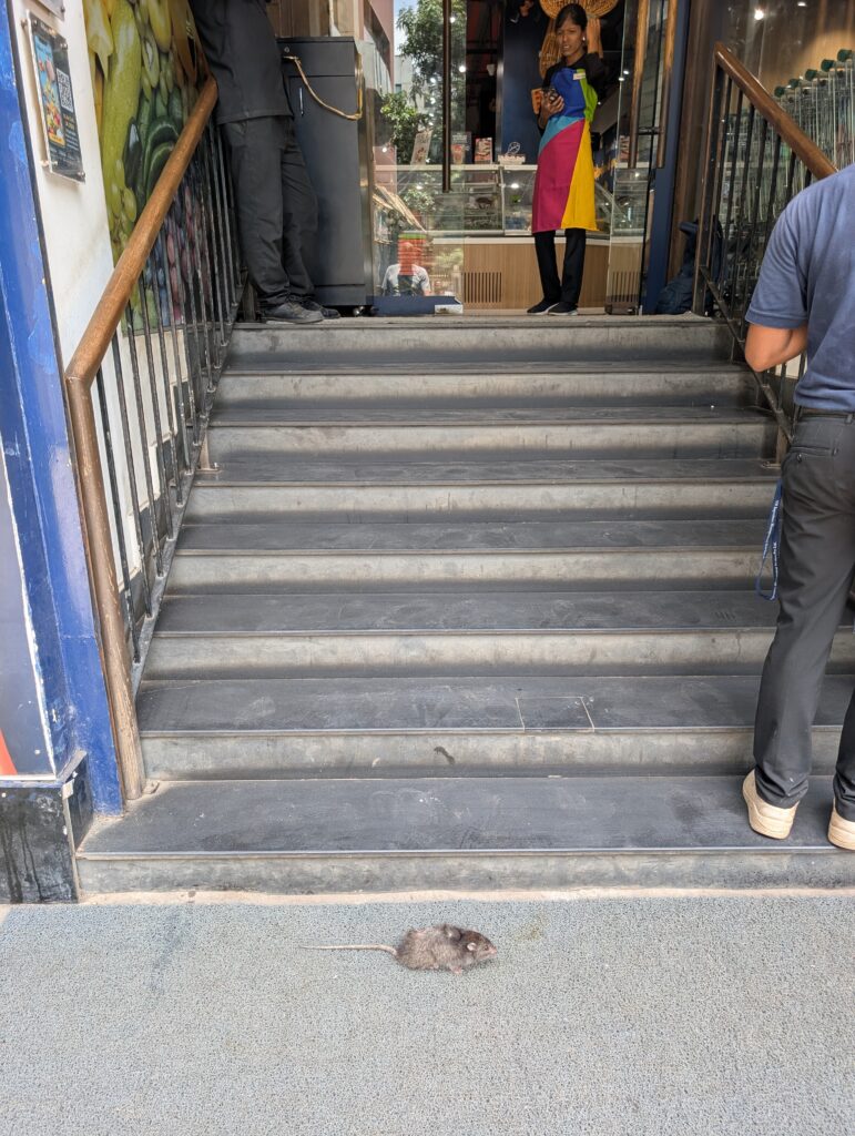 There really wasn’t much else for me to do in Juhu. I had walked a couple of the main streets and seen the beach. I certainly wasn’t going swimming there. If I remained in the public area, I would continually be bombarded and accosted by peddlers, touts, and beggars, so I decided to head back. I sweat plenty, so I did stop in at a market to buy a drink or two. The first one I encountered was a very posh, health food store. I couldn’t find anything affordable there, but it was nice and cool, and probably the cleanest looking building I had seen in the entire country of India. That impression was tinged a bit, though, as I left. As I walked down the ramp toward the street, a HUGE rat crossed my path initially, then seemed to want to go into the store. I saw exponentially more rats in Mumbai than any other place I had been on the trip. Even in upscale Juhu, at the nicest store in town, there were still rats!