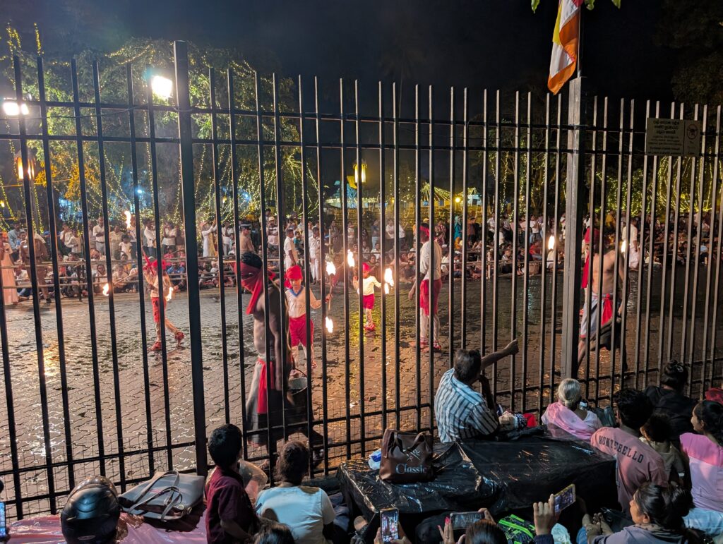 It wasn’t really a tooth anyone was coming to see, anyway. We watched the fire dancers, the cultural dancers, the flag bearers, the elephants, and of course all of the people who came to participate in the event. I did see a few European, American, or Australian tourists, but not many. When I did see other white tourists, they nearly always were being walked through the area by a guide. None of them stayed to watch more than twenty or thirty minutes. Most just walked down the path. In their defense, the entire procession lasted three hours. I suppose walking past and catching a sampling of the parade would have been adequate for most people, while avoiding the three hour wait and three hour long procession, as well as the $100 grandstand seating charge. Then again, all of those folks had undoubtedly paid these guide just to lead them through the melee. I suppose I just prefer to learn on my own how to navigate such circumstances. There probably would have been some value in having a knowledgeable guide explain aspects of the Festival of the Tooth and the associated procession.