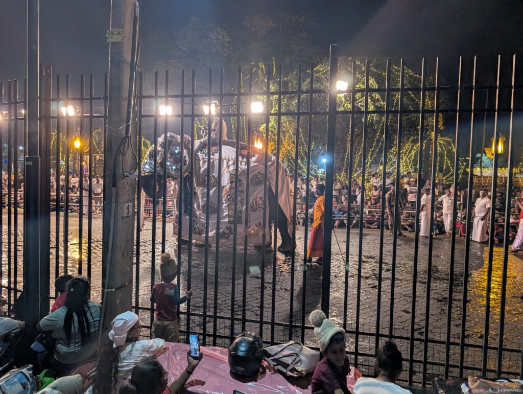 When the last of the parade had passed, the crowd began to disperse. As is nearly always the case in Asia, there were hoards of people moving in masses. Like running water, the crowed flowed around the end of the tall gate, then careened over and through the smaller barriers built to keep spectators out of the street. I was famished. I joined the flow until I was able to walk down the main commercial street and into a still-open eatery. I wiggled my way in and sat down to order. The crowd dispersed as I ate my 10:00 p.m. supper. I enjoyed my meal before walking back up to the hostel where I had my shower and slept well. I needed to get an early start the next morning in order to make a roughly four hour drive to the only church I knew of on the South side of Colombo.