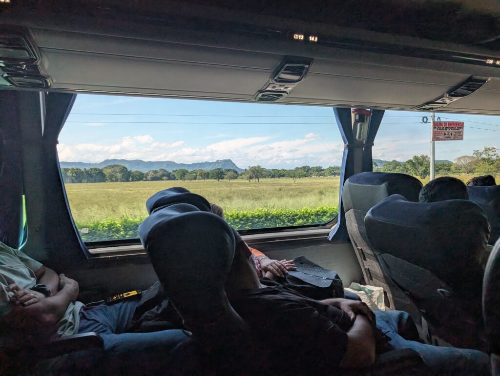 Andrew and I got up early Saturday morning to catch a bus from Bogota to Medellin. We decided that in order to save a bit of money, we would take this option, even though it would take quite a bit longer than flying. The journey is slated to take 10 hours, 50 minutes. Most people who take the bus, begin at night and plan to sleep en route. We opted for the daylight option. We wanted to see the scenery between Bogota and Medellin, which was supposed to be very nice. Further, we didn’t think we’d get any sleep on a bus anyway, considering our height.