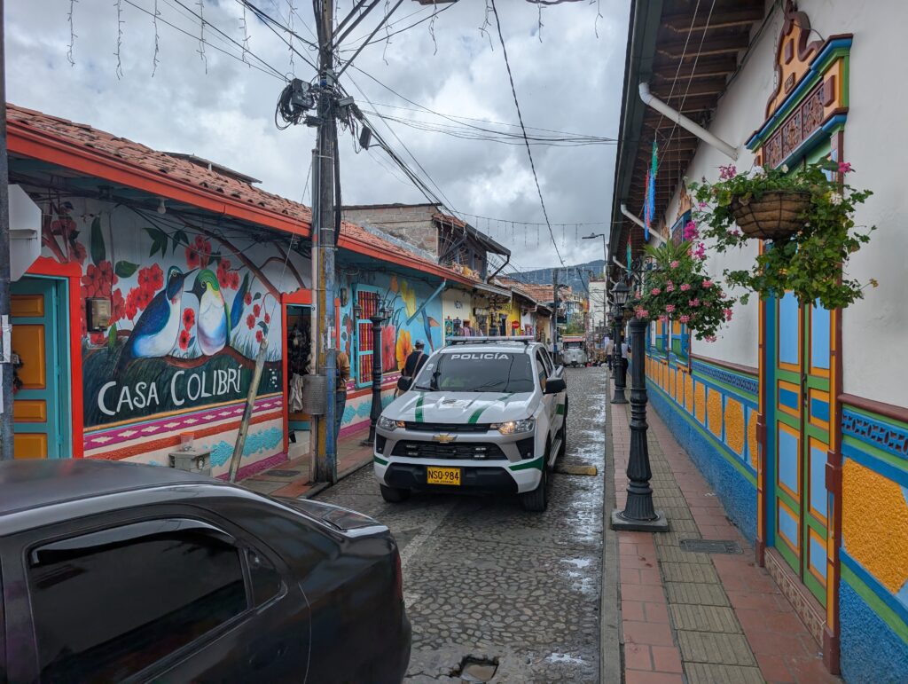 We stopped at Entrerrios and munched on some Pasteles de Pollo before the Malin’s did some shopping. Pasteles de Pollo are a common street food in Colombia consisting of a fried ball of chicken salad. Without the salsa rosada (pink sauce that seemed to be a 50/50 mix of ketchup and mayonnaise as is sometimes used on french fries in the Pacific Northwest), it would have been fairly bland. The sauce was a nice touch and made for a tasty breakfast. The Malin’s had been away from their mountain house for about three months, and thus needed to stock up on foods and cleaning products. We spent a little over an hour working on this project. Andrew and I decided to search for a post office in the meantime.