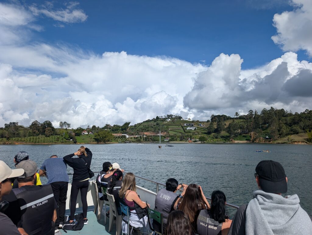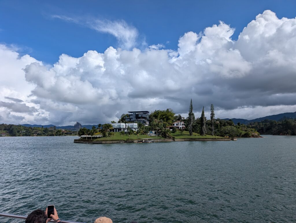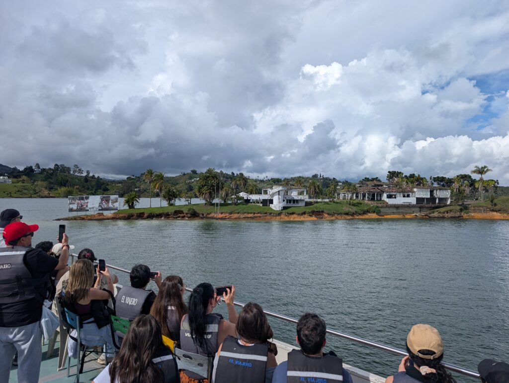We stopped for lunch before taking a boat ride that lasted about half an hour. Our boat ride took us over the remains of a church that had been in a town now buried by the artificial lake. We passed the homes of a couple of famous Colombian footballers, a nineteenth century hospital with an interesting story about a bachelor doctor who fathered over 30 children, and ultimately led us by a large compound that had once been one of the retreats of Pablo Escobar. There are some aims now toward making this some kind of public retreat or museum, though nothing has become of any of these yet.