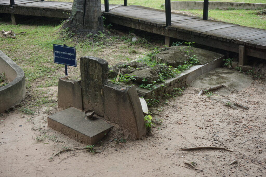 The logical visiting order for these sites would have taken me to Tuol Sleng first, then out to Choeung Ek. Since the Choeung Ek site involved an outdoor tour quite a bit further from my room, I opted to head out there first. I took a public bus to within half a mile and walked the rest of the way to the memorial site. There is a small museum there, and a large memorial Buddhist tower. Most of the buildings from the site’s service as an execution ground were cannibalized for lumber during the desperate times that followed the end of the regime. For dispatching their victims, the Khmer Rouge selected a site that had been a Chinese graveyard. A few of these older Chinese gravestones remain. The more subtle and eerie presence comes from the shallow depressions in the ground. These sunken pits are the sites of mass graves of thousands of people.