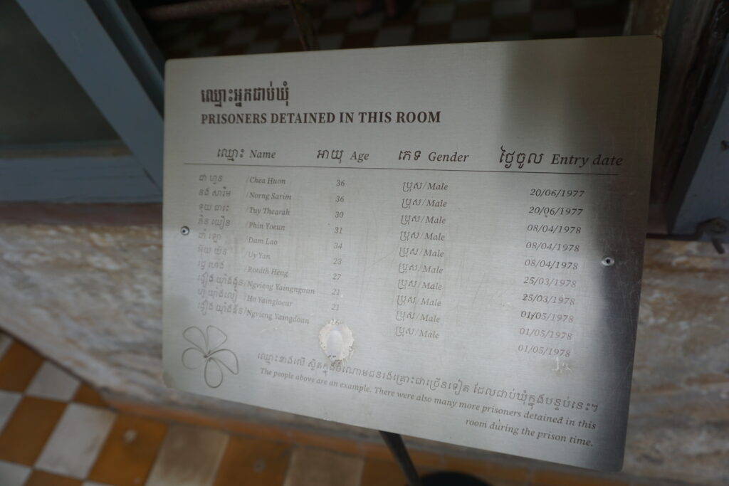 I had already seen the huge skull stack at Cheoug Ek. Perhaps the photos that most moved me at Tuol Sleng were those of the cadre. The staff doing the torturing was almost entirely made up of kids! There were some in their twenties, but more teenagers than any other age group. What must the rest of your life be like after being compelled to torture your countrymen until they confess to a crime they didn’t commit, so they can be executed? Kids were also often the executioners. If prison cadre didn’t carry out their duties, or if they made errors in their work, they were very likely to end up as prisoners in the same institution where they had just been the torturers. I hope that in that situation, I would have the courage to refuse to commit those kinds of heinous crimes. I can understand how often people did not. Who can say what any of us would do in that terrible circumstance? It seems certain, though, that survivors of the cadre would have born scars so terrible as to make the life they lived not much preferable to the death they would have been sent to had they not obeyed.