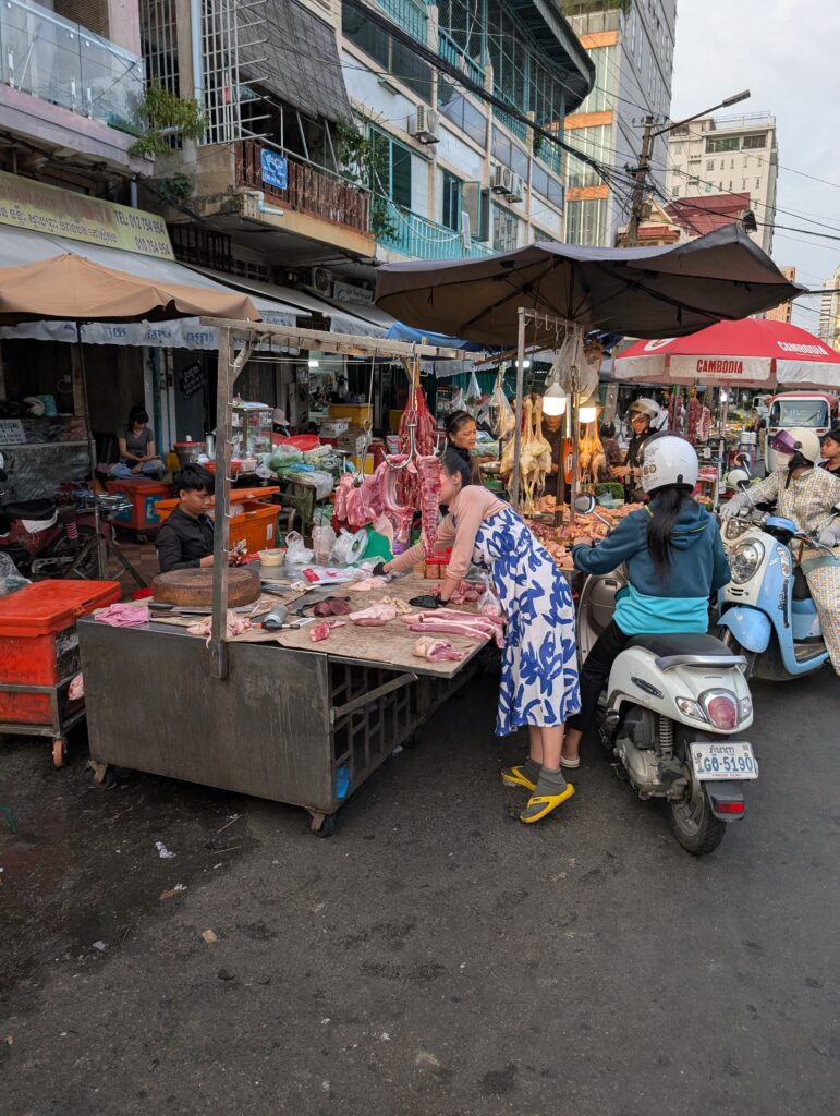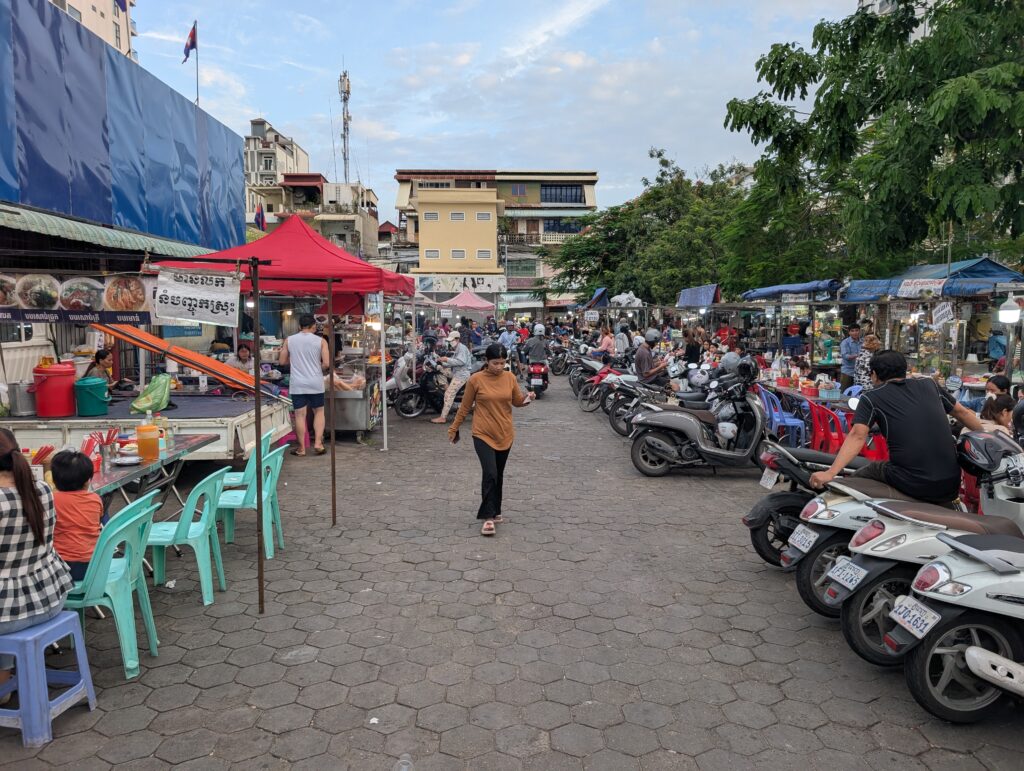 After a day like that, I did not want to spend the evening sitting alone in my room pondering the depths of evil that people are capable of. I decided I would go look for supper in the Russian market. I found plenty of food vendors there and ate some kind of large noodle soup with unsweetened donut sticks used to soak the soup. Cambodians eat a lot of soup. To me, that seems strange based on the inherent heat of the country. I suppose in a poor place, soups are a convenient, inexpensive, and to some extent reusable meal. Perhaps that is why they are so prevalent.