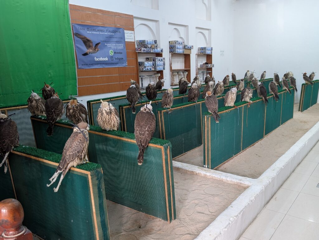 After taking my Dama beating, I bade Khalid farewell and set out to walk the rest of the market before heading off to other pursuits. I found an entire section of Souq Waqif dedicated to falconry. Qatar claims falconry as the national sport. They are proud of this heritage. There are at least a couple dozen falconry shops in Souq Waqif. They sell gloves, hoods, jesses, anklets, lures, and everything else you might need to work with your bird. More impressively, most of these shops had ample supplies of the falcons themselves. I cautiously walked into several, curious about this type of business I would never see at home in America. Most of them had benches for customers to sit and visit, and I assume to be pitched on the sale of an expensive bird. The birds were beautiful and seemed comfortable there. I asked one owner how much these birds cost. I was told they could cost anywhere between 5,000 Qatari Riyals (about $1,300) to several million, depending on breed and training. As with most hobbies, one can spend as much as one feels inclined to spend.