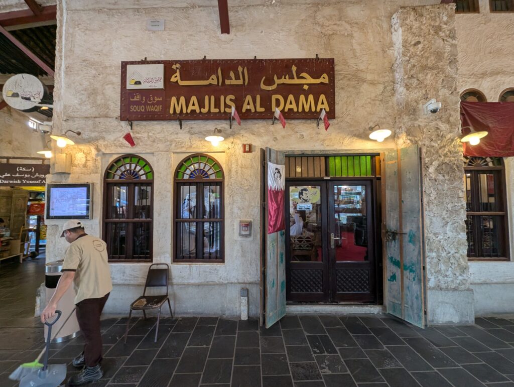 The non-English speaking souvenir vendor had directed me to Majlis Al Dama. As you might expect from reading the other articles in this section, this was a sitting room dedicated to the traditional Qatari game of Dama. Dama is a bit like checkers, but there are different rules as to how the pieces move, and when captures can or must be made. I stood outside looking through the window and deduced the purpose of this sitting room. The Qatari government, wanting to preserve the tradition of playing Dama, had dedicated this space as an always free, open to all social space dedicated to the game. Wise of them, I thought, to put this majlis in the middle of the best visited tourist market in town.